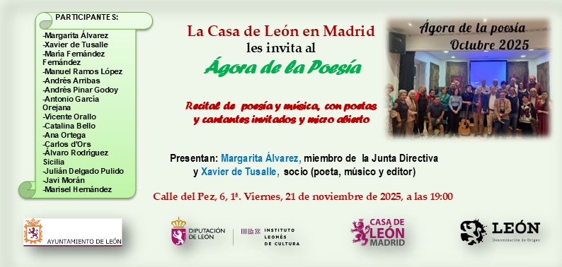 El próximo viernes 07 de noviembre a las 19:00 horas. La Casa de León en Madrid les invita a participar... |