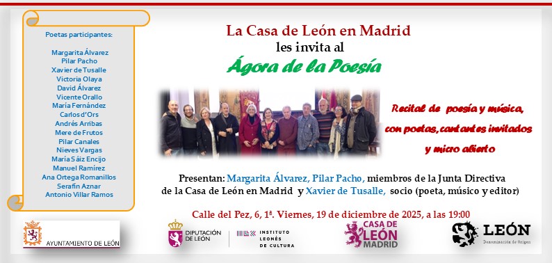 Viernes 19 de diciembre a las 19:00, XXXI edición del Ágora de la Poesía, en la que poetas y cantantes... |